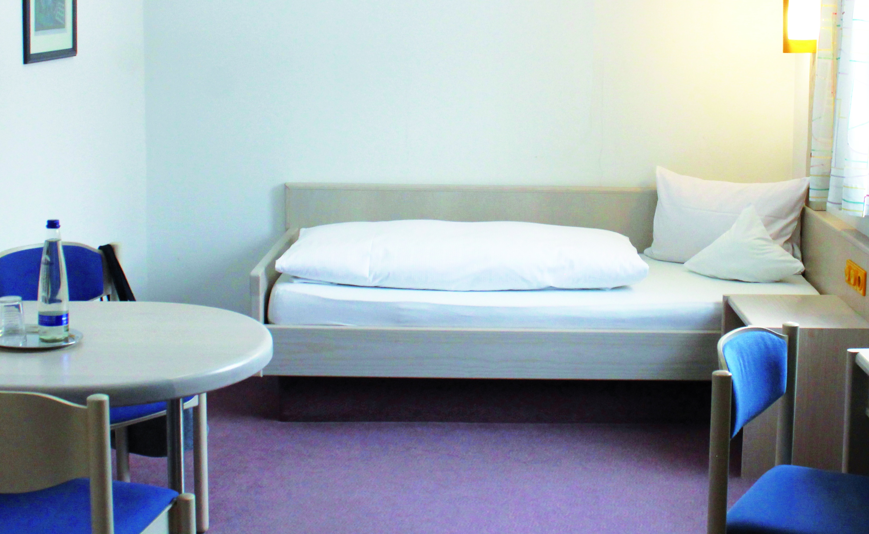 Klassisches Einzelzimmer, recht geräumig, allerdings ohne Balkon